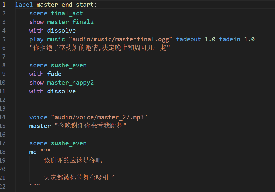 代码我是真人工古法手敲,由于用的是renpy,这是个低代码框架,在这个项目中最难的业务逻辑竟然是键入用户的姓名,其次就是if选择了,这个东西我一开始还以为很好敲,因为一两周前试了下,发现这种开发流程还是比较简单的,就是简单的对话